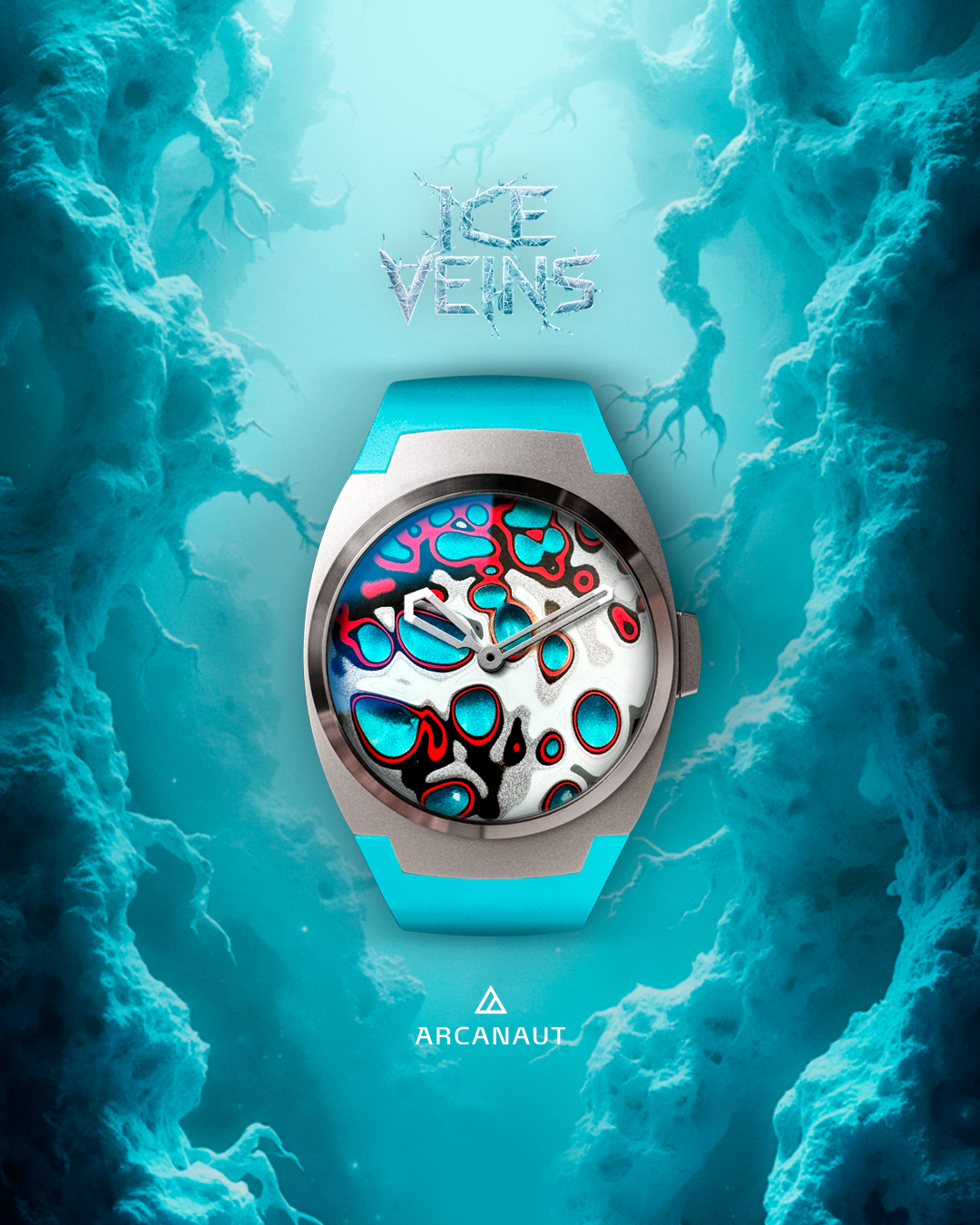 The dial blends frosty whites deep blues, and fiery reds to imitate the natural patterns in old ice sheets. It captures the spirit of frozen power running through an icy planet's heart. Every part is giving you the feeling of looking into a glacier's core where the universe's untold secrets stay frozen in time.