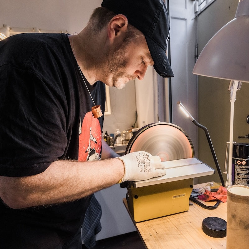 Once the case is machined at our partner’s facility in Jaegerspris, Denmark, we subject the material to very high temperatures. Following that process, we lightly blast the case middle by hand with very fine media, giving the case a matte finish.