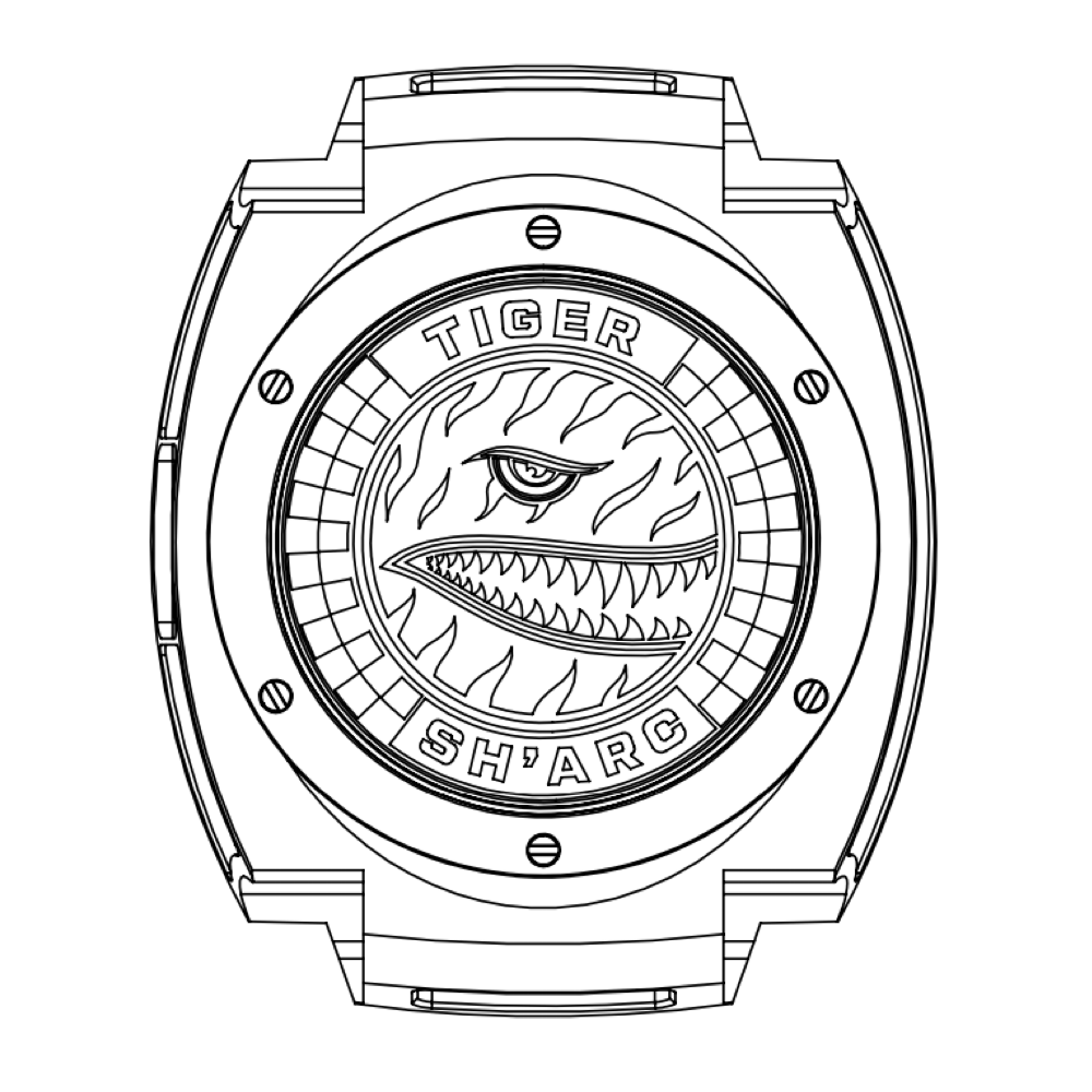 The Tiger Sh'Arc is something new and very different from everything we've ever done before, utilising a Zirconium Titanium composite (known as Zircuti), reminiscent of the centuries old Japanese technique called “Mokume Gane".