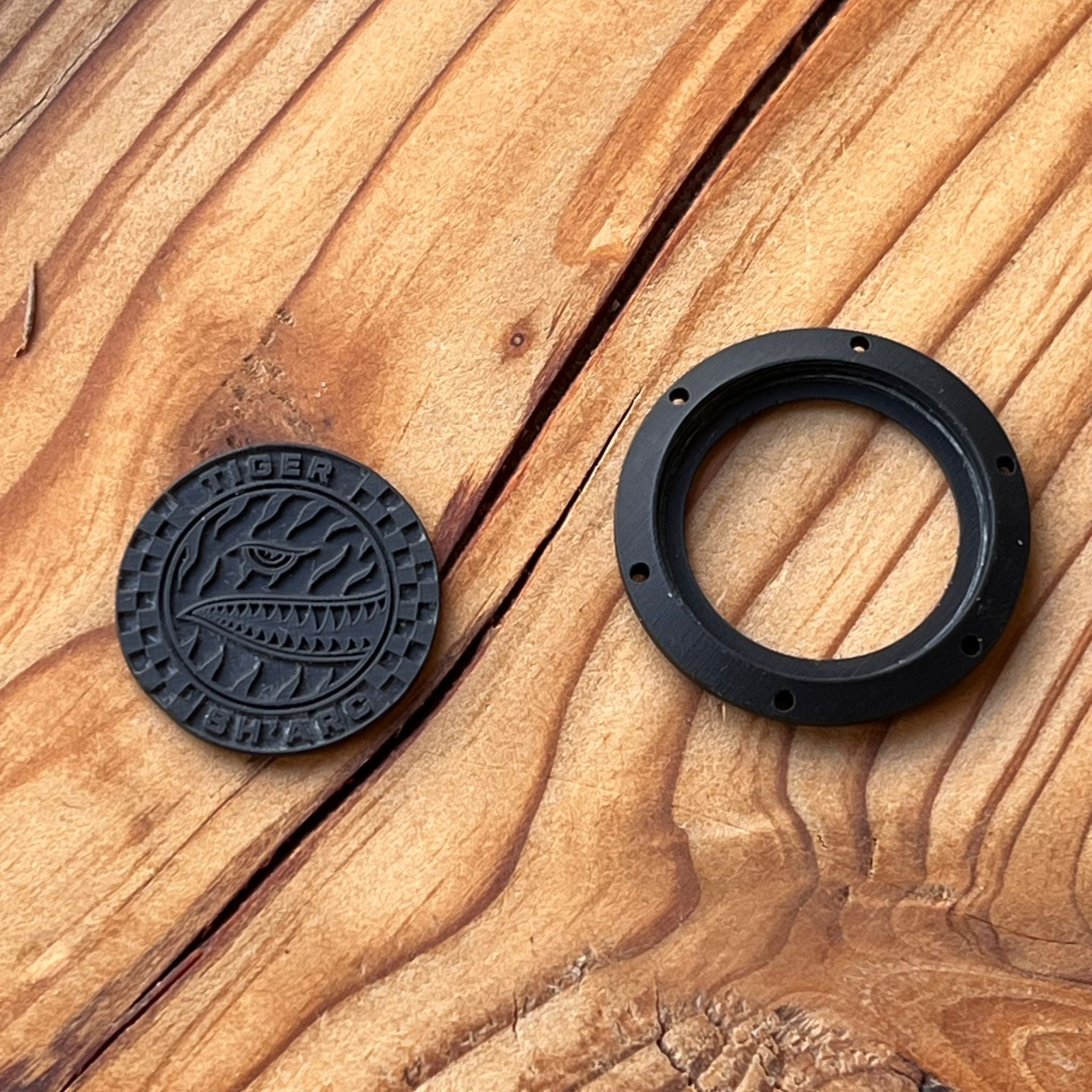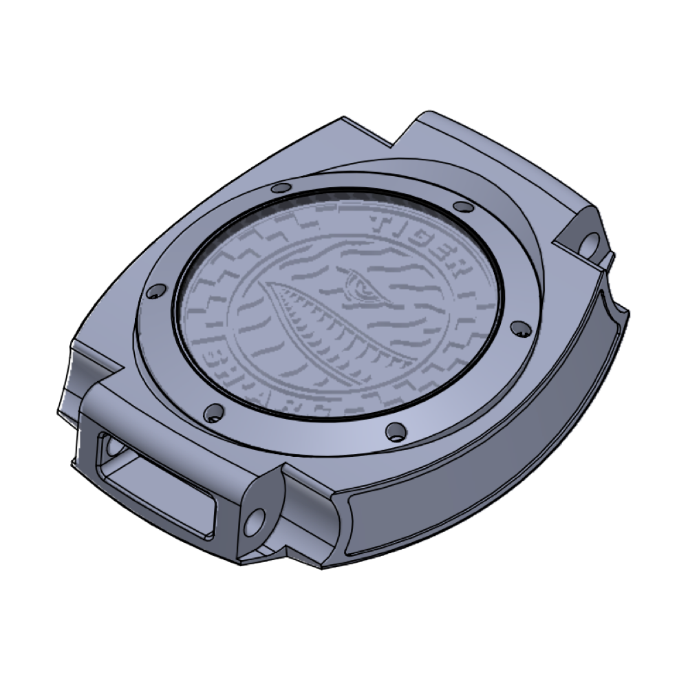 We're trying something new with the Tiger Sh'Arc and Bonehead models: luminous "Glowpatch" designs, deeply laser-engraved designs filled with high-performance liquid lume, which is hand-applied by RC Tritec in Switzerland. The medallion is fitted with an o-ring and sits beneath a gasketed flat sapphire crystal, which ensures water resistance and the longevity of the lume.